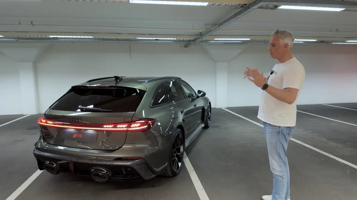 De Audi RS5 Avant is hier. Als dikke plug-in hybride. En dat maakt deze RS ineens een stuk interessanter, vooral in Nederland. Onder de motorkap ligt nog steeds een dikke 2.9 V6, maar nu gecombineerd met een elektromotor en een accupakket van zo’n 25 kWh. Daarmee kun je tot ongeveer 83 km elektrisch rijden. Niet wereldschokkend, maar wel genoeg om veel ritjes stil en zuinig te doen. En het belangrijkste: minder belasting. Daardoor wordt deze RS5 ineens een “ramdeal” — zeker vergeleken met eerdere RS-modellen. Qua looks zit het natuurlijk helemaal goed. Breder, lager en agressiever dan ooit, met 9 cm bredere spatborden, dikke RS-uitlaten en een uitgesproken stance. De OLED-achterlichten met speciale lichtsignaturen maken het helemaal af. Ook voorin zie je een scherper design met een plattere singleframe grille en agressieve luchtinlaten. Alles schreeuwt: dit is geen gewone A5, dit is een RS.